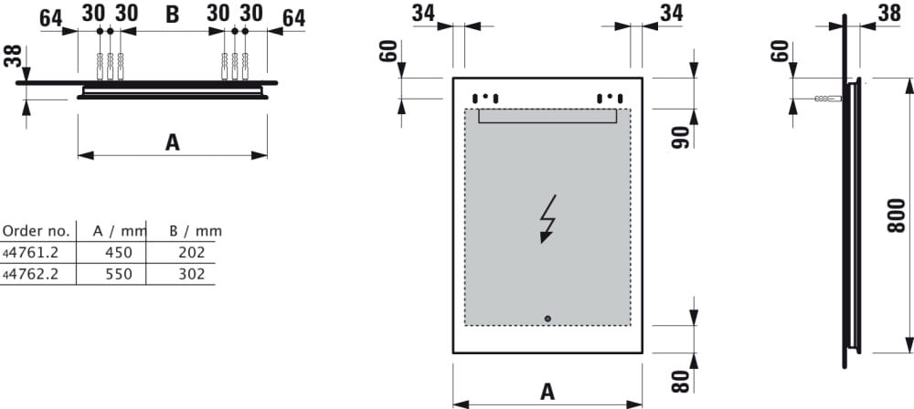 LAUFEN LEELO Zrkadlo, 450 mm v hliníkovom ráme, s vodorovným LED osvetlením, 1 dotykový senzor (Zap/Vyp/Stmievanie), 4000 K, IP44, 450x800 mm, Zrkadlo 144, H4476129501441