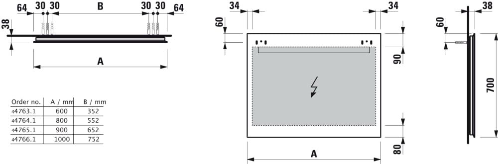 LAUFEN LEELO Zrkadlo, 900 mm v hliníkovom ráme, s vodorovným LED osvetlením, pre externý vypínač, 4000 K, IP44, 900x700 mm, Zrkadlo 144, H4476519501441