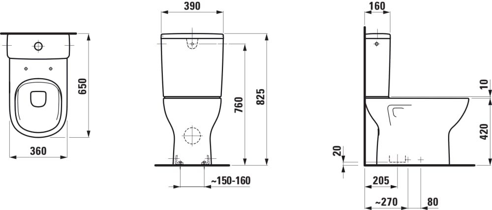 LAUFEN LUA, WC kombi Rimless, hlboké splachovanie, zvislý odpad, Biela 000, 650x360 mm, H8240870000001