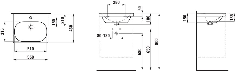 LAUFEN LUA Umývadlo bez otvrou pre batériu s prepadom, 550x460 mm, farba Biela LCC, H8100824001091 Čítať viac