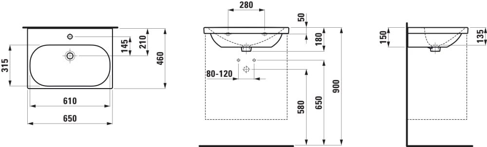 LAUFEN LUA Umývadlo s jedným otvorom pre batériu uprostred s prepadom, 650x460 mm, farba Biela LCC, H8100844001041 Čítať viac