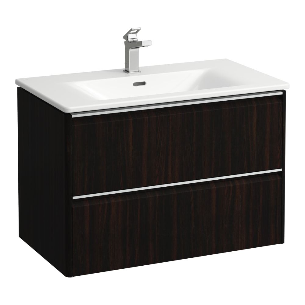 LAUFEN PALACE Umývadlo slim so skrinkou 80 cm, s 2 zásuvkami, vr. deliaceho systému do zásuviek, úchytka z eloxovaného hliníka (lesk), 800x450x545 mm, Tmavohnedý brest 263, H8607052631041