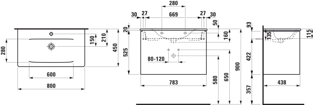 LAUFEN PALACE Umývadlo slim so skrinkou 80 cm, s 2 zásuvkami, vr. deliaceho systému do zásuviek, úchytka z eloxovaného hliníka (lesk), 800x450x545 mm, Tmavohnedý brest 263, H8607052631041 Čítať viac