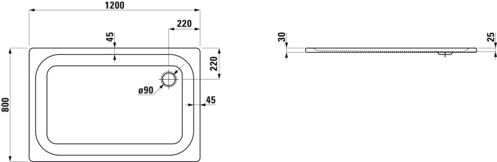 LAUFEN PLATINA Oceľová sprchová vanička, hrúbka 3,5 mm, 1200x800x25 mm, Biela matná 757, H2150057570401
