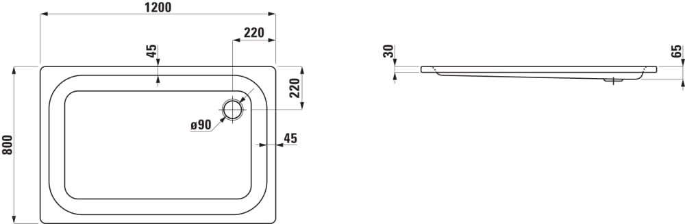 LAUFEN PLATINA Oceľová sprchová vanička, hrúbka 3,5 mm, 1200x800x65 mm, Biela / protišmyková 600, H2150156000401