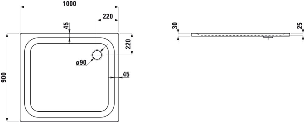 LAUFEN PLATINA Oceľová sprchová vanička, obdĺžniková, oceľ 3,5 mm, extra plochá (25 mm), 1000x900x25 mm, Biela 000, H2150300000401
