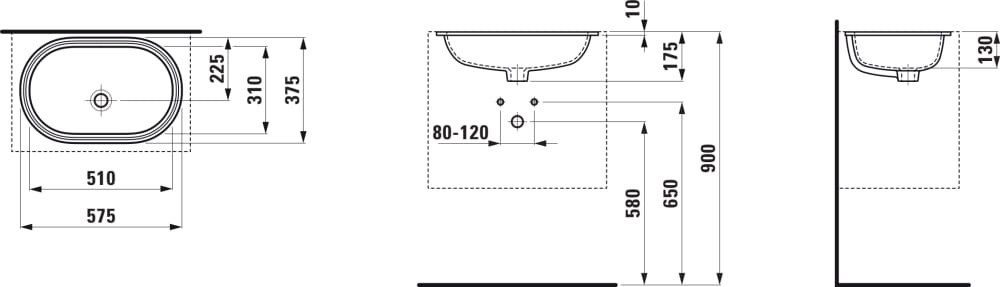LAUFEN SAVOY Vstavané umývadlo, oválne bez otvrou pre batériu s prepadom, 510x310 mm, farba Biela, H8189450001091 Čítať viac