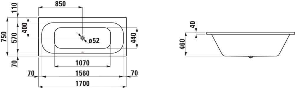 LAUFEN SOLUTIONS Obdĺžniková vaňa, vstavaná verzia, sanitárny akrylát, 1700x750x460 mm, H2235300000001
