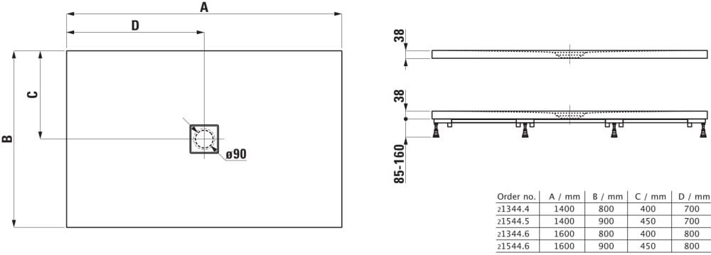 LAUFEN SOLUTIONS Sprchová vanička, obdĺžniková, pre inštaláciu v úrovni podlahy, Marbond, 1400x900x38 mm, Biela 000, H2154450000001