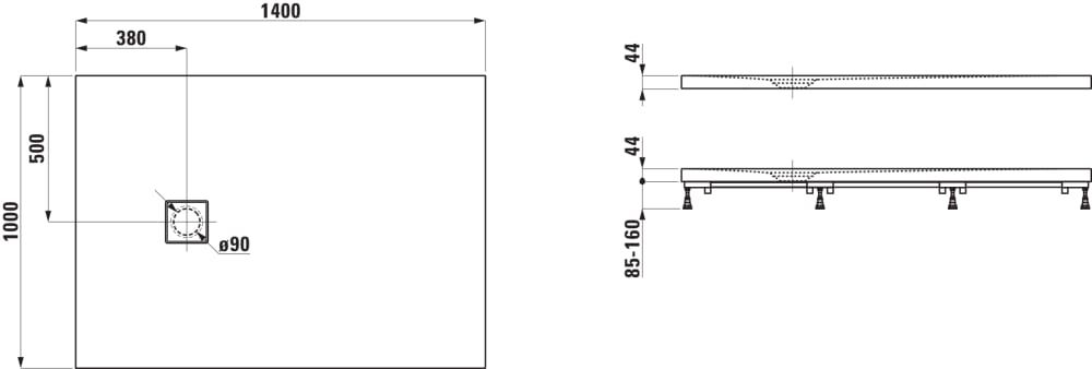 LAUFEN SOLUTIONS Sprchová vanička, obdĺžniková, s odtokom na boku, Marbond, 1400x1000x44 mm, Biela 000, H2134450000001