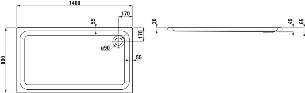 LAUFEN SOLUTIONS Sprchová vanička, sanitárny akrylát, 1400x800x30 mm, Biela 000, H2125070000001