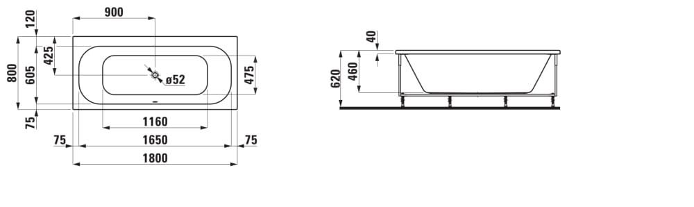 LAUFEN SOLUTIONS Vaňa, s hliníkovou konštrukciou, 1800x800x620 mm, H2245010000001
