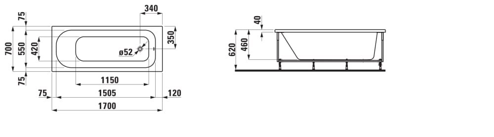 LAUFEN SOLUTIONS Vaňa s konštrukciou a L-panelom pravým, 1700x700x620 mm, H2225060000001