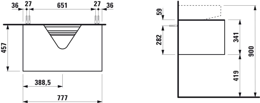 LAUFEN SONAR Skrinka pod umývadlo, s 1 zásuvkou, pre umývadielka H816341/H816342, s výrezom uprostred, 775x455x340 mm, Titán & nero marquina 142, H4054410341421