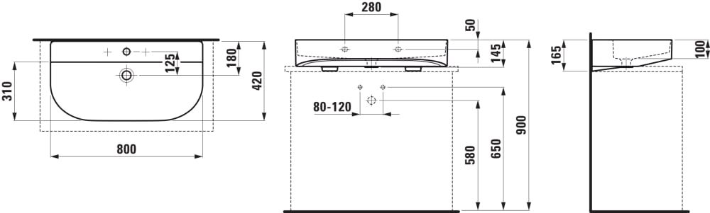 LAUFEN SONAR Umývadlo, brúsená spodná hrana bez otvrou pre batériu s prepadom, SaphirKeramik, 800x420 mm, farba Biela LCC, H8163444001091