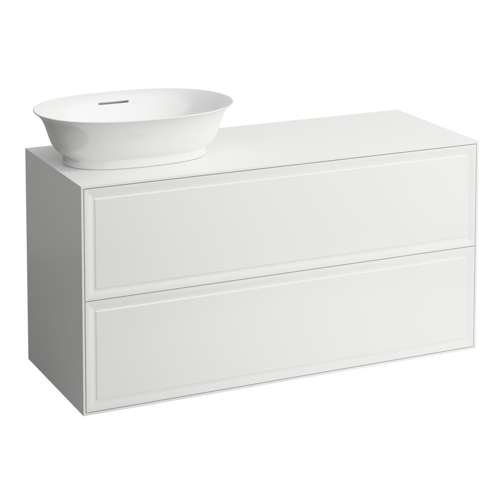 LAUFEN THE NEW CLASSIC Skrinka pod umývadlo 118 × 45 × 35 cm, s 2 zásuvkami, s výrezom vľavo, pre umývadlové misy 812850, 812851, 812852, 812853, 1175x455x600 mm, Biela lakovaná 631, H4060830856311