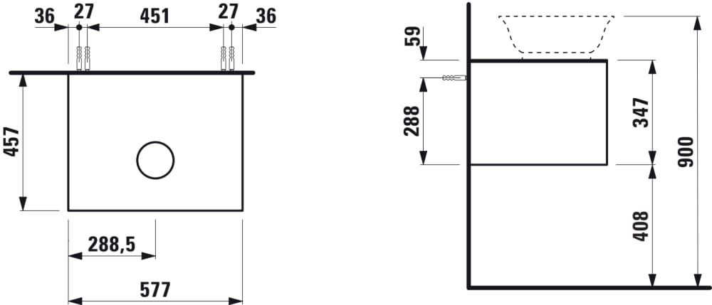 LAUFEN THE NEW CLASSIC Skrinka pod umývadlo 600, s 1 zásuvkou, s výrezom uprostred, pre umývadlové misy H812850/H812851/H812852/H812853, 575x455x345 mm, Biela matná 170, H4060010851701
