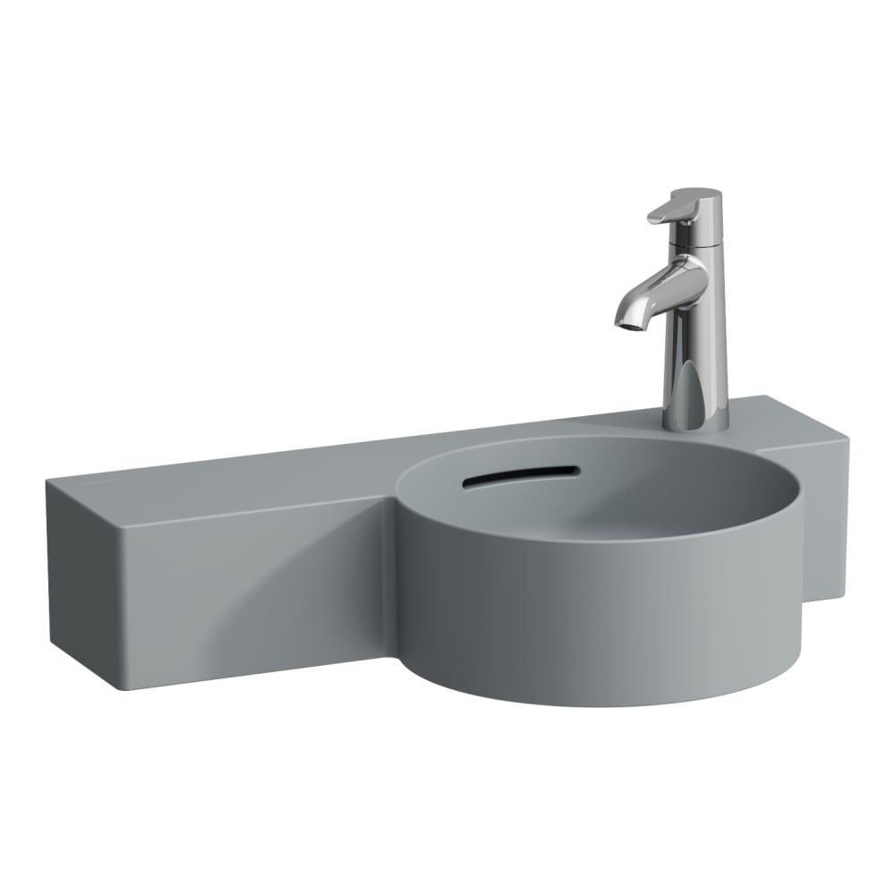 LAUFEN VAL Okrúhle umývadielko, s odkladacou plochou vľavo s jedným otvrom pre batériu vpravo, s prepadom, rezané na jednej strane, SaphirKeramik, 550x315 mm, farba Grafit mat, H8152847588121