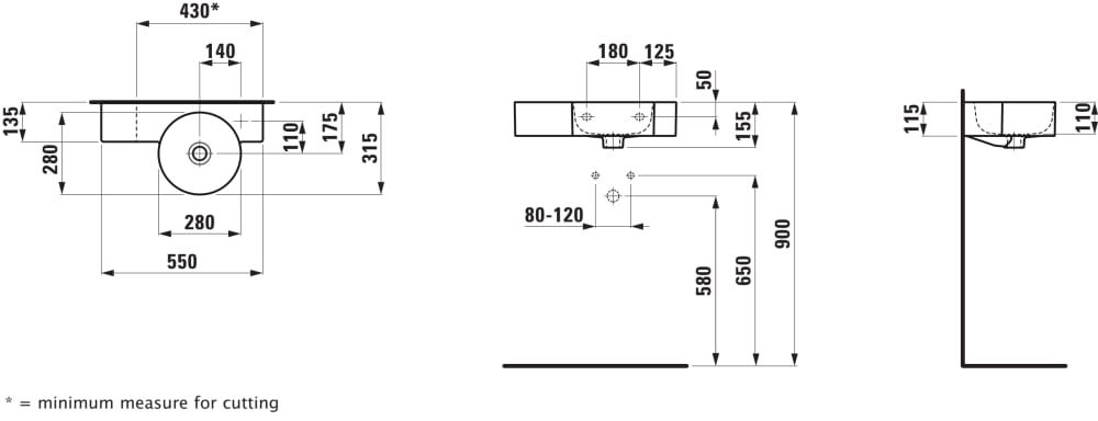LAUFEN VAL Okrúhle umývadielko, s odkladacou plochou vľavo s jedným otvrom pre batériu vpravo, s prepadom, rezané na jednej strane, SaphirKeramik, 550x315 mm, farba Grafit mat, H8152847588121 Čítať viac