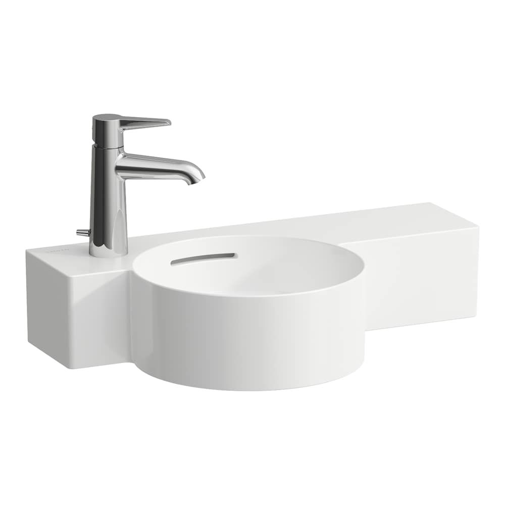 LAUFEN VAL Okrúhle umývadielko, s odkladacou plochou vpravo s armatúrovou doskou vľavo, s jedným otvorom pre batériu vľavo s prepadom, SaphirKeramik, 550x315 mm, farba Biela, H8152830001051