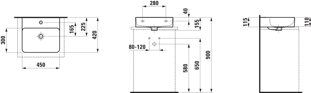LAUFEN VAL Umývadielko, brúsená spodná hrana s jedným otvorom pre batériu uprostred s prepadom, SaphirKeramik, 450x420 mm, farba Biela matná, H8162807571041