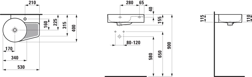 LAUFEN VAL Umývadielko s jedným otvorom pre batériu, bez prepadu, SaphirKeramik, 530x400 mm, farba Grafit mat, H8152887581111 Čítať viac