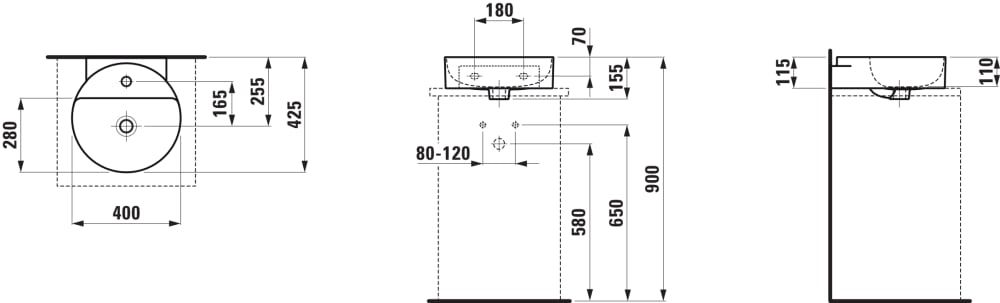 LAUFEN VAL Umývadlo, brúsená spodná hrana bez otvoru pre batériu, bez prepadu, SaphirKeramik, 400x425 mm, farba Biela, H8132810001121