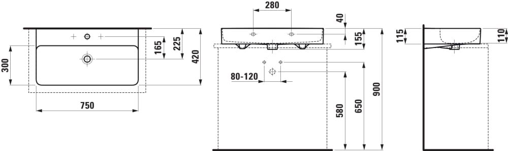 LAUFEN VAL Umývadlo, brúsená spodná hrana s jedným otvorom pre batériu uprostred s prepadom, SaphirKeramik, 750x420 mm, farba Biela matná, H8162857571041