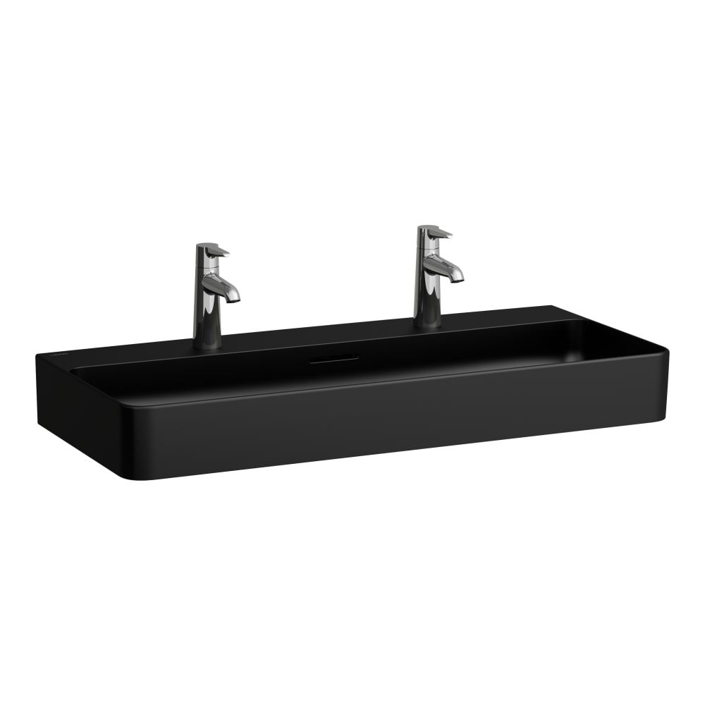 LAUFEN VAL Umývadlo s tromi otvormi pre batériu s prepadom, SaphirKeramik, 950x420 mm, farba Čierna matná, H8102877161081
