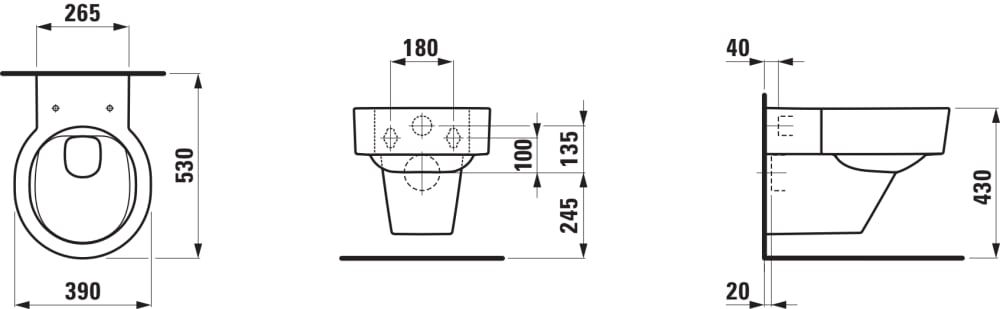 LAUFEN VAL, Závesné WC, Rimless, hlboké splachovanieä, Biela LCC Active A00, 530x390 mm, H820281A000001