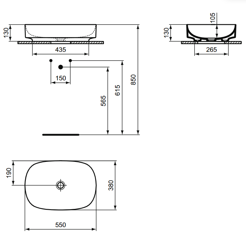 LINDA-X umývadlo na dosku z keramického črepu Diamatec rozmer 55x38 cm farba biela matná bez prepadového otvoru. Vrátane upevňovacej sady.