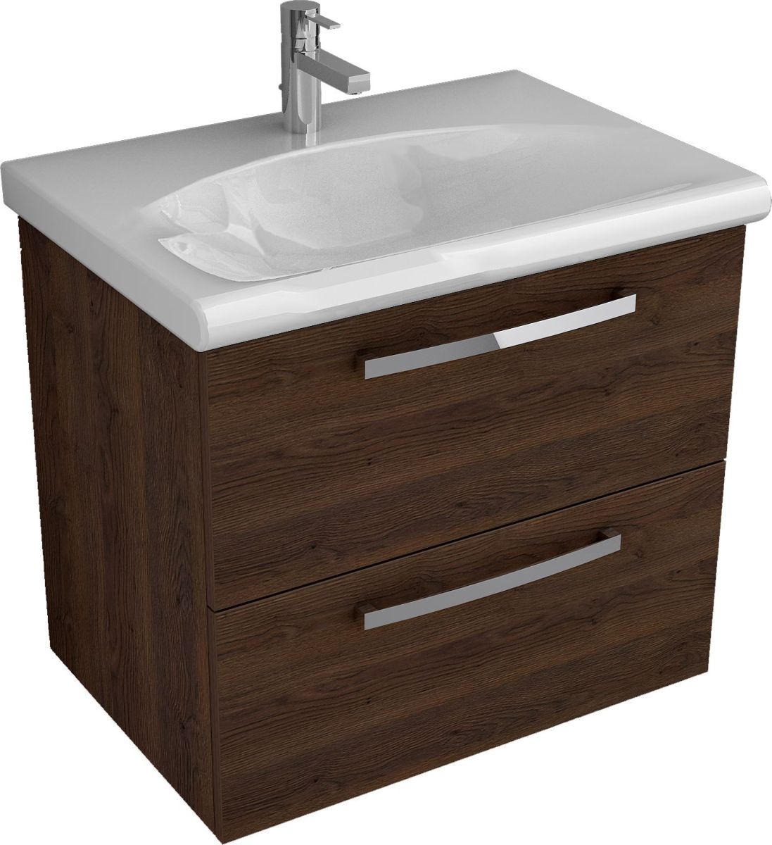 Umývadlo nástenné 70 x 49 cm farba biela lesklá. S otvorom pre umývadlovú batériu. S prepadom. AlphaLight+ skrinka závesná pod umývadlo 70 cm, dvojzasúvka farba dub gladstone tabak. Zásuvky s madlom a Soft dotváraním . V rátane upevňovacej sady.