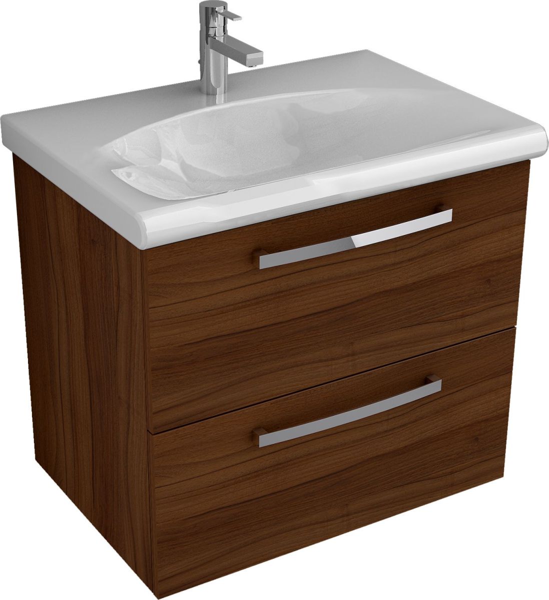 Umývadlo nástenné 70 x 49 cm farba biela lesklá. S otvorom pre umývadlovú batériu. S prepadom. AlphaLight+ skrinka závesná pod umývadlo 70 cm, dvojzasúvka farba orech dijon prírodný. Zásuvky s madlom a Soft dotváraním . V rátane upevňovacej sady.
