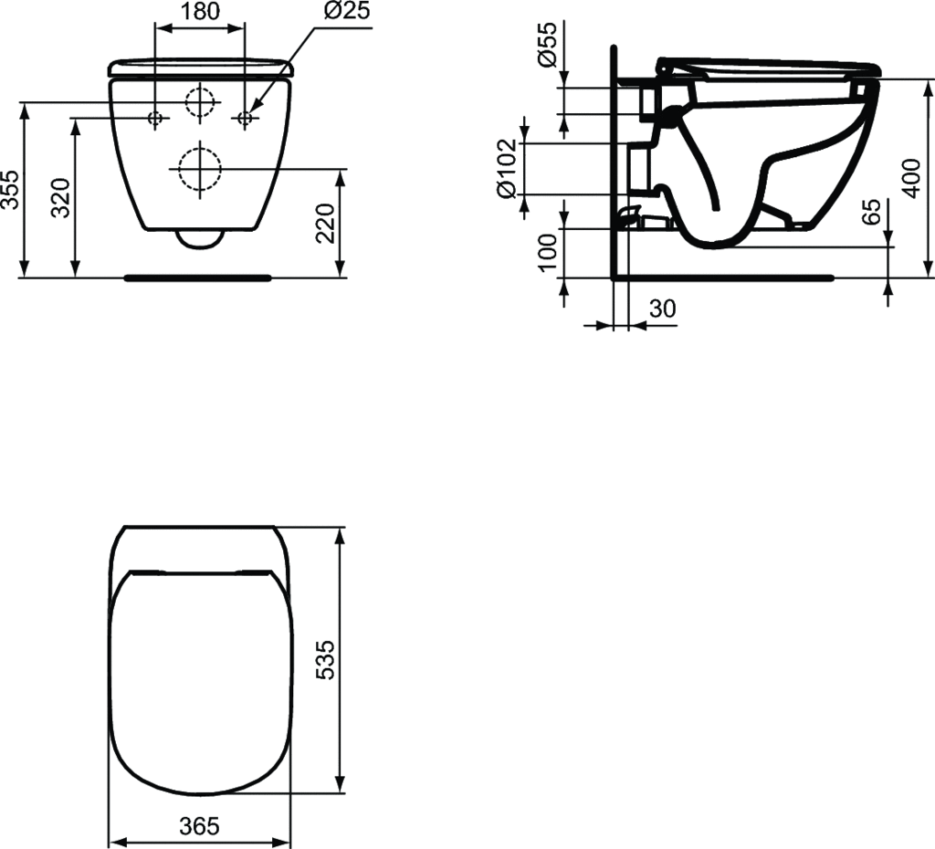PACK, TESI WC závesné 53x36 cm, T0078 + TESI WC sedadlo Slow-closing, T3527, T354101, PA0030