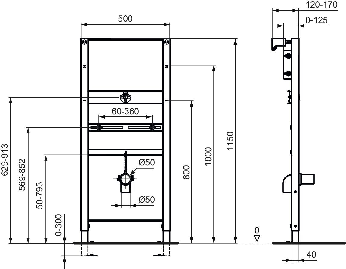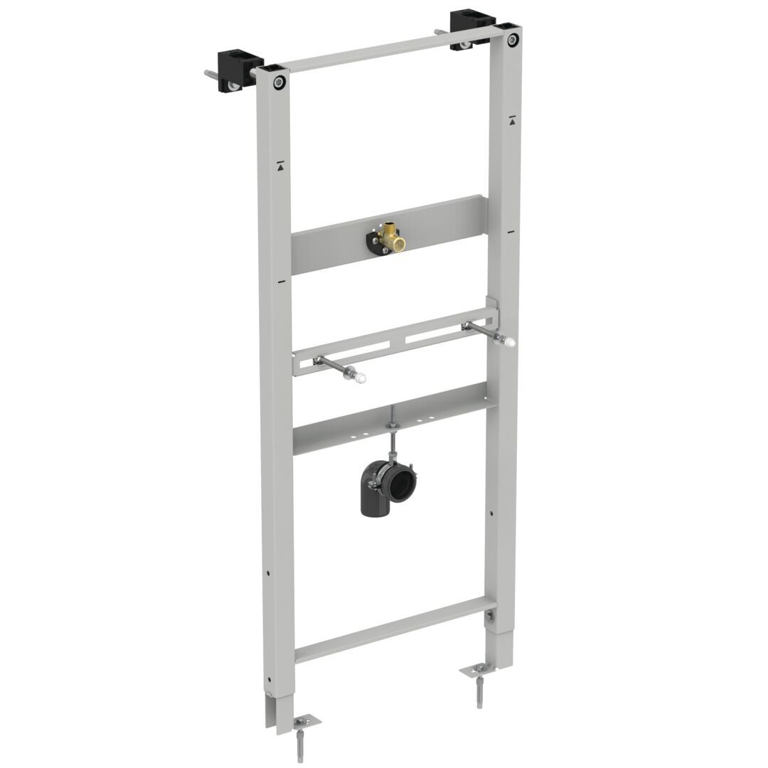 ProSys™ štandardný podomietkový modul pre urinály – inštalácia pred pevnú stenu alebo do ľahkej priečky zo sadrokartónu. Samonosný rám z oceľových profilov s výškovo nastaviteľnými pätkami (0–300 mm), s antikoróznou ochranou a ochranou proti poškriabaniu. Testovaná nosnosť rámu pre zaťaženie 100 kg. Jednoduchá a rýchla inštalácia vďaka systému EasyFix. Minimálna inštalačná hĺbka 120 mm. Nastaviteľné montážne držiaky príslušenstva. Závitové tyče majú rozmer M8 x 120 mm.