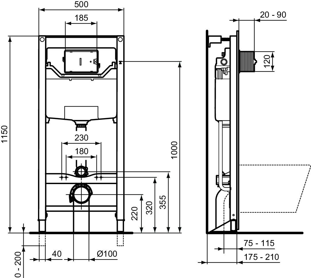 • pre závesná WC s montážnymi rozmermi 180 alebo 230 mm