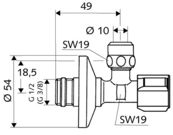 Schell rohový ventil s konusovým zverným šrúbením, G1/2". S filtrom zachytavajúci nečistoty, so stlačovacou maticou. Materiál mosadz s chrómovou povrchovou úpravou.
