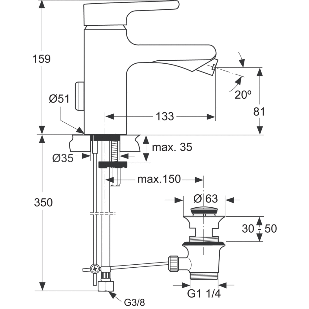 Attitude bidetová batéria s odpadovou garnitúrou G1 1/4, DN 15. Pevný vývod a kĺbový perlátor. Cool Body technológia. Vývod 133 mm. S flexibilnými hadicami G3/8. Kovová ovládacia páka. Montáž zo spodu - upevnenie EASY FIX s centrovacím a tesniacím krúžkom. CLICK-kartuša Ø40 mm s keramickými diskami. Integrovaný obmedzovač teplej vody s ECO funkciami. Životnosť testována podľa EN 817. Ochrana proti hluku DIN 4109, trieda 1.