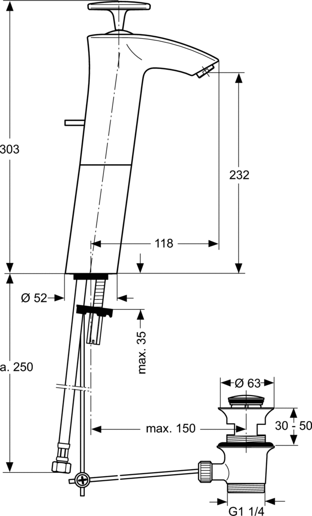 Venice umývadlová batéria s vysokým vývodom,s odpadovou garnitúrou. Obmedzovač prietoku s nastaviteľnou EKO-tryskou. Pevný vývod.  Vývod 118mm. Výška vývodu 23,2 cm. Kovová ovládacia páka, montáž zo spodu. Joystick-multiport kartuša s keramickými diskami.