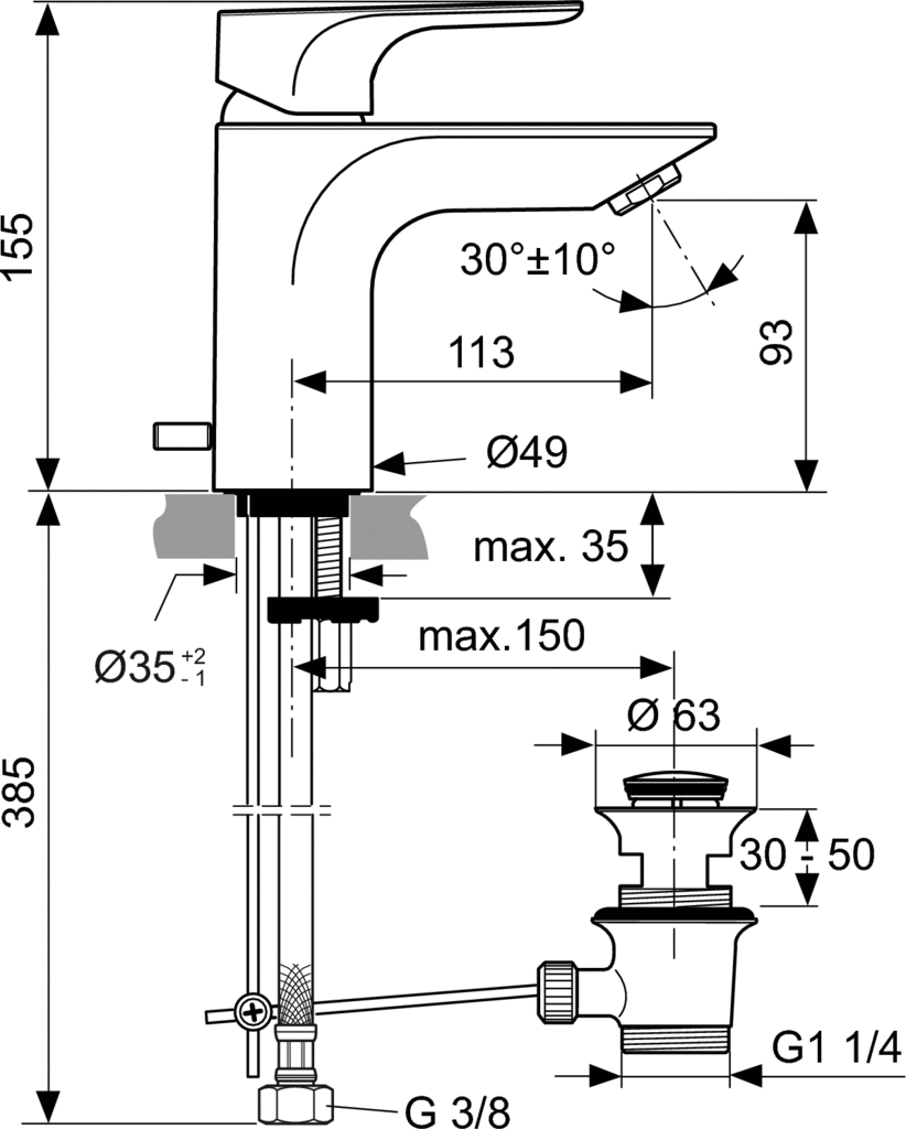 Umývadlová batéria vysoká s odpadovou garnitúrou