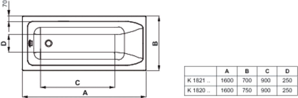ACTIVE vaňa akrylátová 160x70 cm, K182101