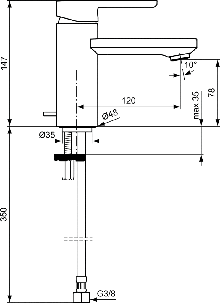 Glance Neon umývadlová batéria, bez odpadovej garnitúry a flexibilnými hadicami. Pevný oblý vývod a skrytý perlátor. Vývod 120 mm. Výška vývodu 78 mm. S flexibilnými hadicami G3/8. Kovová ovládacia páka. Montáž zospodu - upevnenie EASY FIX. Click- kartuša Ø 28 mm s keramickými diskami. Integrovaný zásobnik maziva ( vhodné pre potravinárske použitie). Integrovaný obmedzovač teplej vody plus ECO funkcia. Životnosť testovaná podľa EN 817. Ochrana proti hluku DIN 4109, trieda 1.