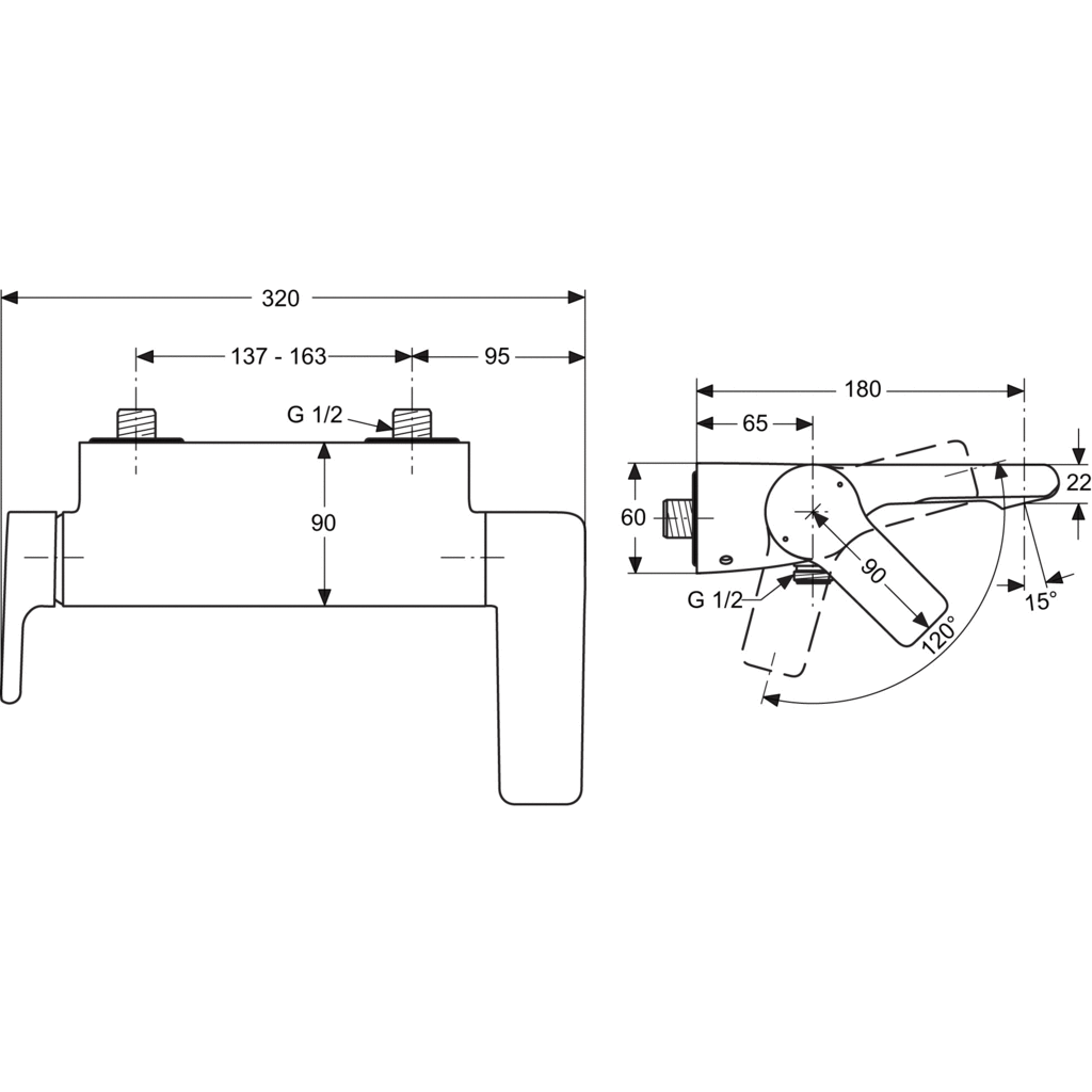 Attitude vaňová batéria nástenná DN 15. Skrytý perlátor. Se zariadením na zamedzenie spätného toku. Pripojenie sprchy v strede G1/2. Vodné cesty v batérií neobsahujú nikel. Cool Body technológia. Vývod 180 mm. Skryté S-prípojky s nízkou hlučnosťou (nastaviteľné od 137 - 163 mm). Kovová ovládacia páka. Integrovaný automatický prepínač zo sprchy do vane. CLICK-kartuša Ø40 mm s keramickými diskami. Integrovaný obmedzovač teplej vody s ECO funkciou. Životnosť testována podľa EN 817. Ochrana proti hluku DIN 4109, trieda 1.
