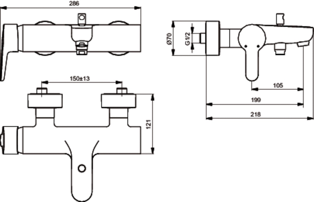 Connect Blue vaňová batéria nástenná DN 15. So zariadením na zamedzenie spätného toku. Vývod 199 mm. S-prípojky s krytkou a nízkou hlučnosťou (nastaviteľné od 137–163 mm). Kovová ovládacia páka s permanentným označením teplá-studená. Automatický prepínač zo sprchy do vane. CLICK-kartuša Ø 47 mm s keramickými diskami. Pivot kartuše z nerezovej ocele. Rozsah otáčenia páky 120°. Integrovaný obmedzovač teplej vody a ECO funkcia. Integrovaný zásobník maziva (vhodné pre potravinárske použitie). Životnosť testovaná podľa EN 817. Ochrana proti hluku DIN 4109, trieda 1.