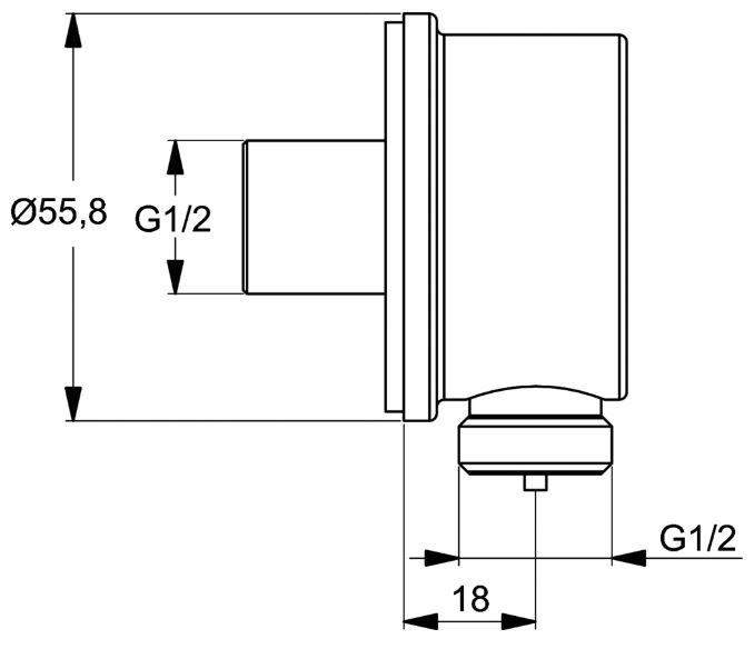 IdealRain diel pre pripojenie sprchy. So zariadením na zamedzenie spätného tlaku. Pripojovací závit a pripojenie do steny G1/2.