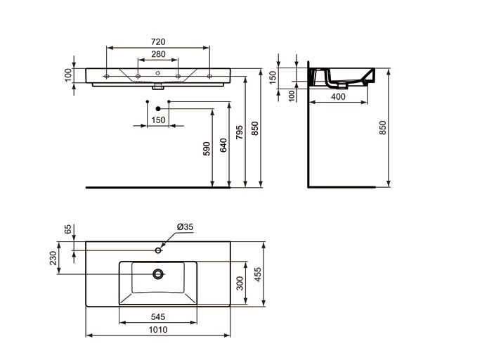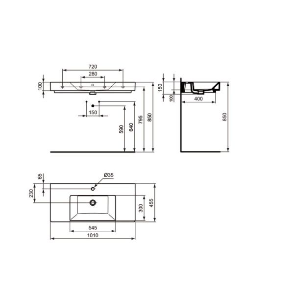 Strada nábytkové umývadlo 100 cm z jemnej žiarohliny s prepadom. 1 otvor pre umývadlovú batériu. Upevnenie - 4 skrutky M10 x 140 mm ( 2x K710767.) nie je súčasť dodávky. Inštalácia na dosku.