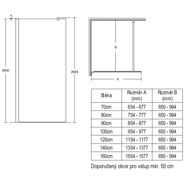Synergy Wetroom vstup z oboch strám 90 cm, výška 202,5 cm. Prevedenie výplne : číre bezpečnostné sklo (8mm) podľa EN14428 s povrchovou úpravou IDEAL CLEAN GLASS (zamedzuje usadzovaniu vodného kameňa a uľahčuje čistenie). Všetky wetroom steny sú dodávané s profilom pre upevnenie do steny a hliníkovým tiesniacim pásikom pre inštaláciu k podlahe alebo sprchovej vaničke. Pri inštalácii - vstup z oboch strán sa stenový profil nepoužije. K wetroom stene je nutné objednať 2x upevňovacie rameno. K wetroom stene je možné objednať 1 alebo 2 kusy zakončovacích panelov 30 cm. Skutočný rozmer Wetroom stien bez stenového profilu je menší oproti menovitému rozmeru o -62mm.