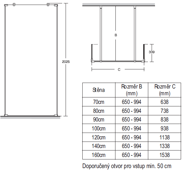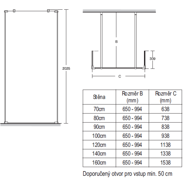 Synergy Wetroom vstup z oboch strám 100 cm, výška 202,5 cm. Prevedenie výplne : číre bezpečnostné sklo (8mm) podľa EN14428 s povrchovou úpravou IDEAL CLEAN GLASS (zamedzuje usadzovaniu vodného kameňa a uľahčuje čistenie). Všetky wetroom steny sú dodávané s profilom pre upevnenie do steny a hliníkovým tiesniacim pásikom pre inštaláciu k podlahe alebo sprchovej vaničke. Pri inštalácii - vstup z oboch strán sa stenový profil nepoužije. K wetroom stene je nutné objednať 2x upevňovacie rameno. K wetroom stene je možné objednať 1 alebo 2 kusy zakončovacích panelov 30 cm. Skutočný rozmer Wetroom stien bez stenového profilu je menší oproti menovitému rozmeru o -62mm.