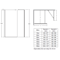 Synergy wetroom rohové prevedenie - stena 100 cm, výška 202,5 cm. Prevedenie výplne : číre bezpečnostné sklo (8mm) podľa EN14428 s povrchovou úpravou IDEAL CLEAN GLASS (zamedzuje usadzovaniu vodného kameňa a uľahčuje čistenie). Všetky wetroom steny sú dodávané s profilom pre upevnenie do steny a hliníkovým tiesniacim pásikom pre inštaláciu k podlahe alebo sprchovej vaničke.  Nastavenie v profile 23mm. K Synergy Wetroom rohové prevedenie je nutné objednať 1x upevňovacie rameno. K Wetroom stene je možné objednať 1x zakončovací panel 30 cm. Skutočný rozmer Wetroom stien so stenovým profilom je menší oproti menovitému rozmeru o -46mm/-23mm.