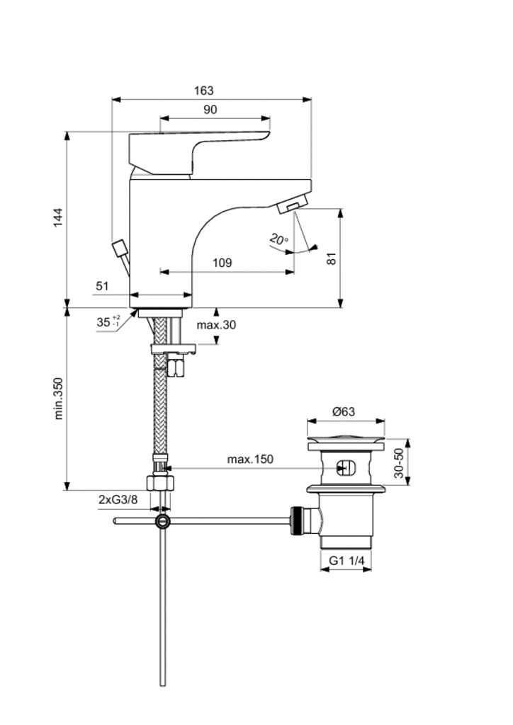 CeraPlan III Umývadlová batéria GRANDE DN 15, s odpadovou garnitúrou G1 1/4. Pevný vývod a perlátor. Vývod 109 mm. Výška vývodu 81 mm. S flexibilnými hadicami G 3/8. Kovová ovládacia páka. Montáž zospodu upevnenie- EASY FIX s centrovacím a tiesniacim krúžkom. Click-kartuša Ø 40 mm s keramickými diskami. Pivot kartuše z nerezovej ocele. Integrovaný zásobnik maziva ( vhodné pre potravinárske použitie ). Integrovaný obmedzovač teplej vody + ECO funkcia. Životnosť testovaná podľa EN 817. Ochrana proti hluku 4109, trieda 1.